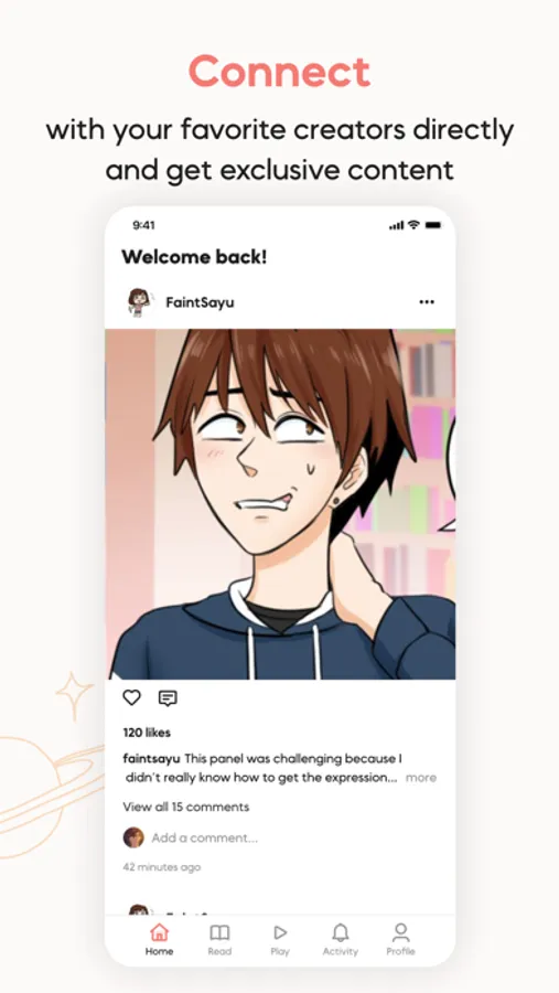 You can easily follow and subscribe to your favorite webcomics. Reading is as easy as scrolling on your phone. You will also be able to like, comment and interact with the creator on your favorite episodes.