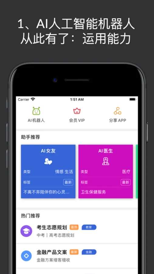 2、支持产品场景:创作文案,星座运势,占卜算命,姓名配对,拆字解字,文章润色,写论文,论文降重,论文查重,语言翻译,中英互译,小说散文,对联挽联,歌词创作,视频文案,广告宣传文稿,心理咨询,升学留学规划,活动策划,旅游规划,减脂减肥规划,医疗护理咨询,编程代码,保险销售文案,简历优化,虚拟男女友,表白文案,店铺运营,数据分析,高考志愿规划,宝宝起名,金融理财文案等场景。