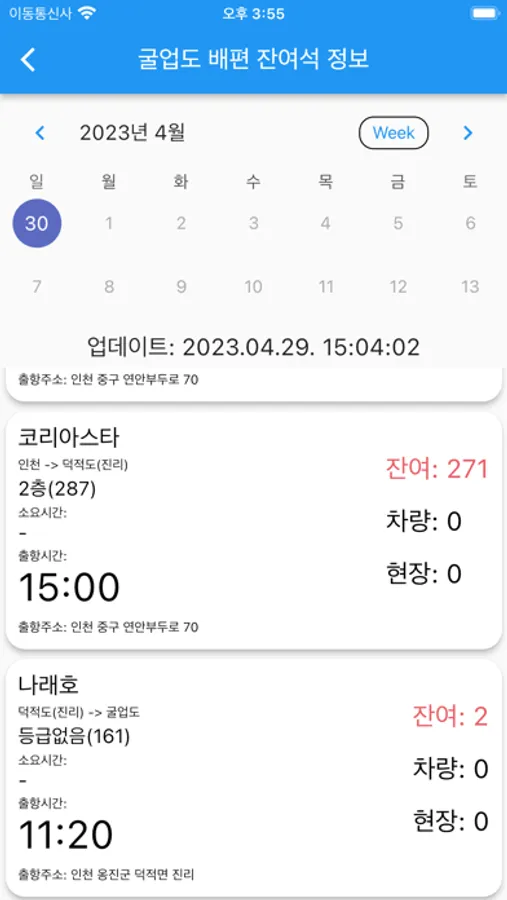 실시간 배편 빈자리 확인: 덕적도와 굴업도로 가는 배편의 실시간 빈자리 상황을 확인하실 수 있습니다. 앱은 항상 최신 정보를 제공합니다.