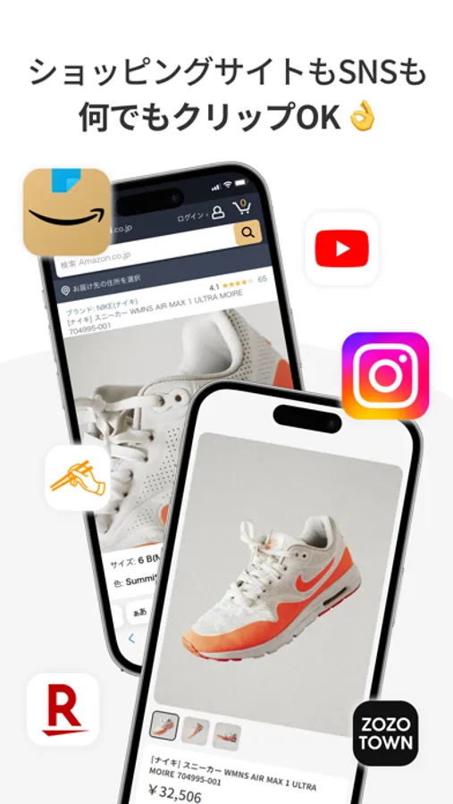 ・Amazon、楽天市場、ZOZO、Qoo10、Yahoo!ショッピングなどの各ショッピングサイトから、気になる商品をまとめることができます。