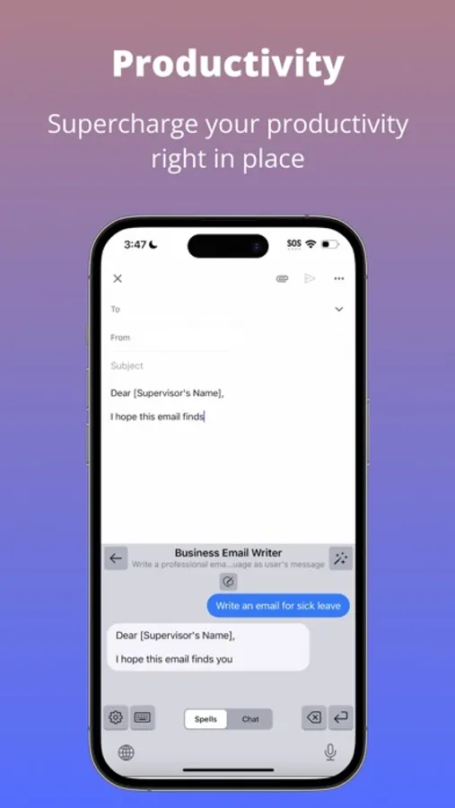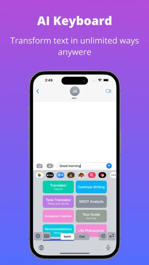 Supercharge your writing experience with our revolutionary AI-native keyboard app. Enjoy the convenience of intelligent AI bots for emails, translations, travel plans, and more. Engage in chat conversations with ChatGPT for AI assistance. Boost your productivity with AI-powered communication.