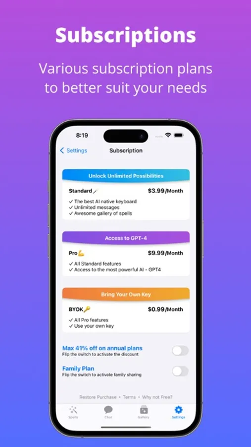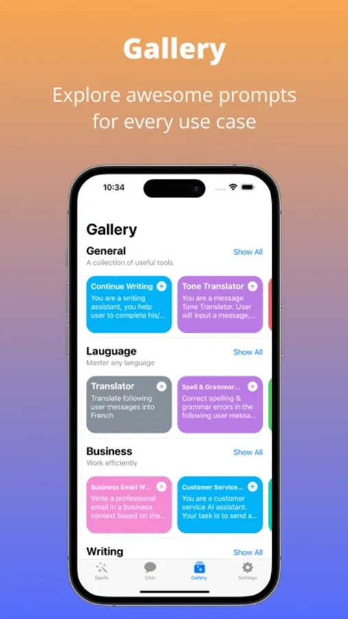 - Awesome Spell Gallery: Access a vast library of spells designed for different scenarios such as translation, travel planning and more. Never struggle with writer’s block again.