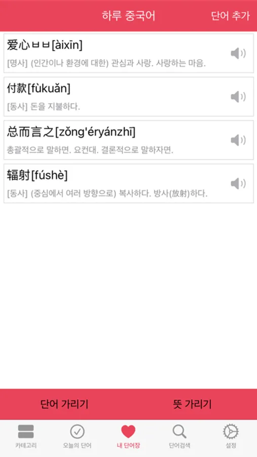 이제 하루 중국어 앱으로 하루에 3개의 단어만 외워보세요