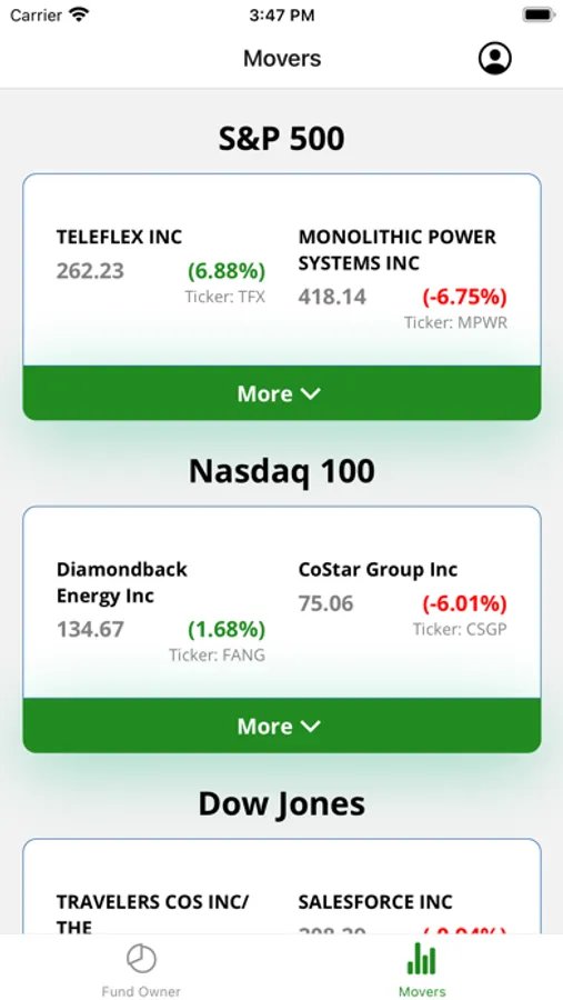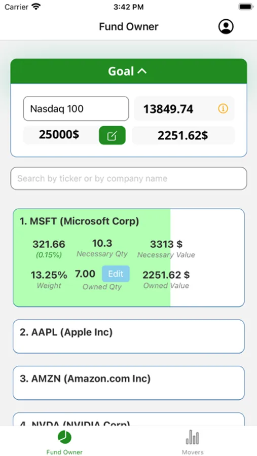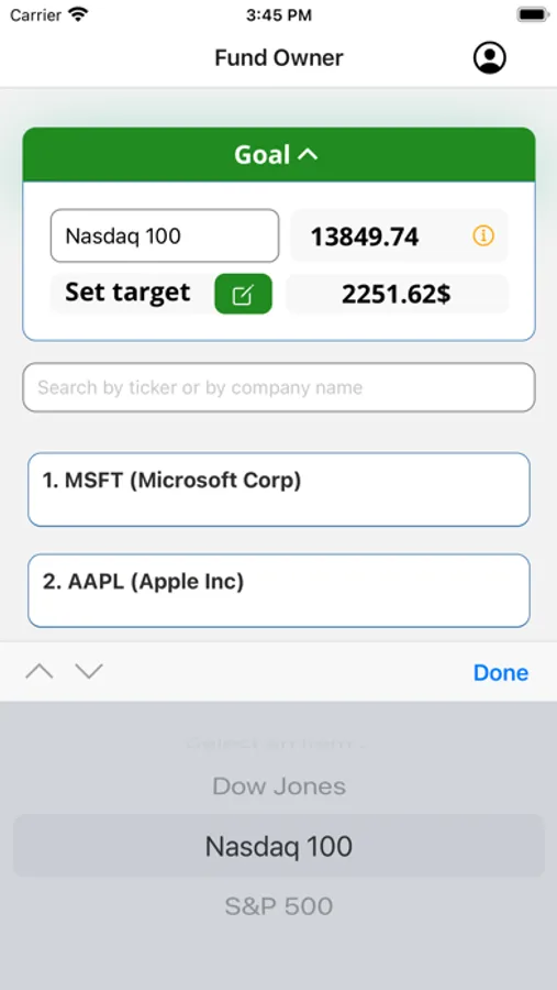 Fund Owner is an intuitive app designed for users who want to build their own investment fund by replicating popular indices such as S&P 500, Nasdaq 100, and Dow Jones. Our app helps you keep track of your investments while focusing on these well-known market indices.