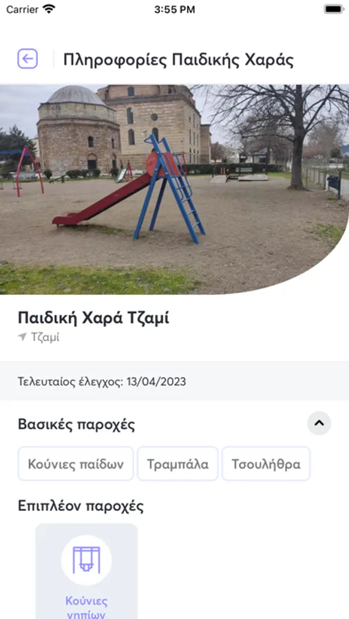 Η επίσημη εφαρμογή των παιδικών χαρών του Δήμου Τρικκαίων. Με αυτή την εφαρμογή ο κάθε δημότης και η κάθε δημότισσα μπορούν να ενημερωθούν για τις παιδικές χαρές του Δήμου και να δουν τα πρόσφατα δελτία ελέγχου των συγκεκριμένων παιδικών χαρών από το προσωπικό του Δήμου. Επίσης σε περίπτωση που αντιμετωπίσουν οποιοδήποτε πρόβλημα στις παιδικές χαρές μπορούν να το αναφέρουν στο προσωπικό του Δήμου με σκοπό την άμεση επίλυση του.