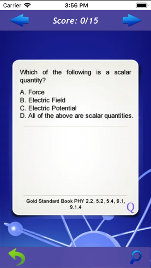 Gold Standard MCAT (Medical College Admission Test) Physics flashcards application contains the most tested MCAT Physics topics and concepts summarized using 97 high quality probing questions that are divided into 3 categories: Basic, Most Tested and MCAT 45 (i.e. the most challenging category). Scores are saved to keep track of your progress and there is an option to mark difficult questions for later review. This Gold Standard Flashcards App is a learning tool for revision but it is not a multiple-choice practice exam.