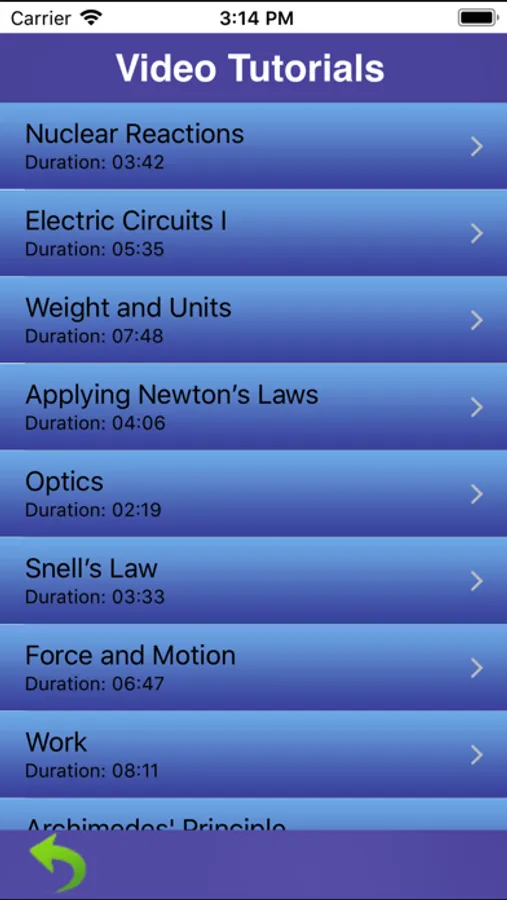 Videos index: Nuclear Reactions, Electric Circuits, Weight and Units, Newton’s Laws, Optics, Snell’s Law, Force and Motion, Work, Archimedes’s Principle, Projectile Motion.