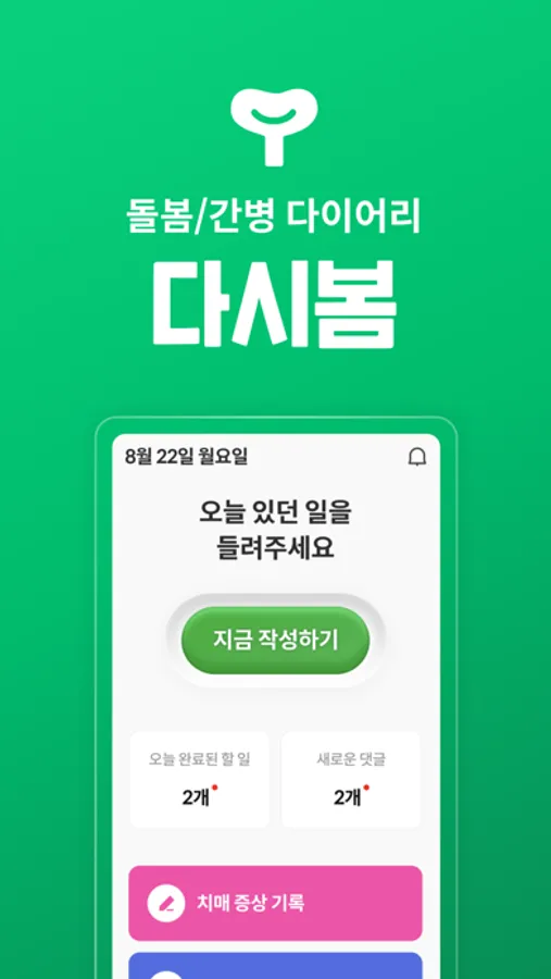 다시봄은 가족을 돌보는 사람들을 위한 돌봄/간병 다이어리입니다.