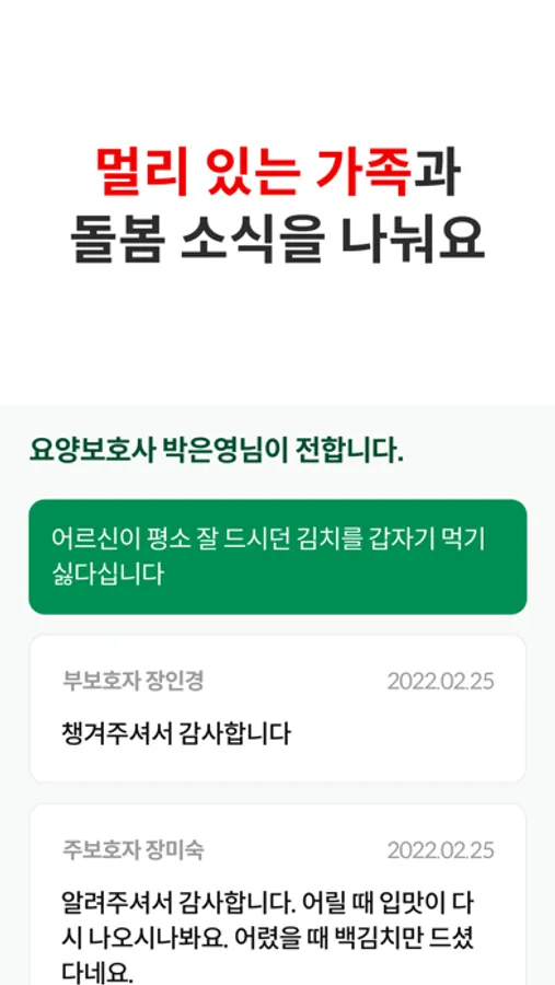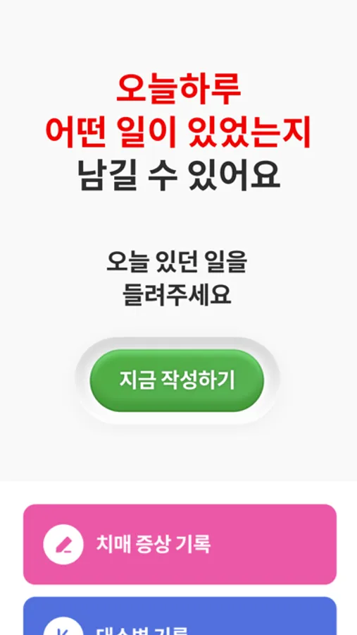 돌보는 하루 동안 어떤 일이 있었는지 남길 수 있어요.
