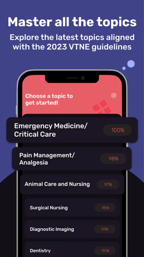 Our goal is to give you all the information you need to pass the VTNE exam. All in one app. This study app directly aligns with the VTNE exam blueprint, giving you the preparation you need to achieve the highest score possible.