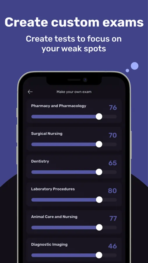 Get your VTNE score prediction based on how you pass the real exam simulator, and study the topics you need to revisit to improve your score.