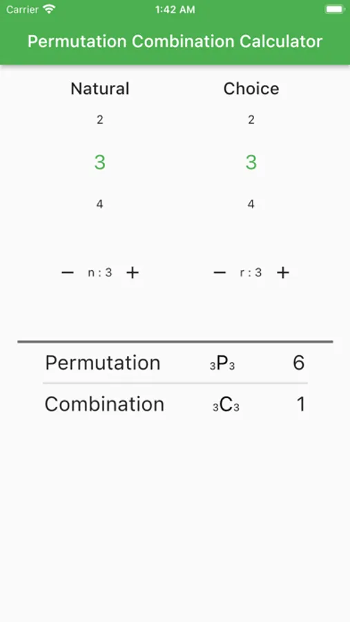 "Permutation Combination Calculator" is an application that makes it easy to perform calculations for permutations and combinations commonly used in mathematics and statistics. By using this app, even those who are not good at mathematical calculations can easily perform calculations.