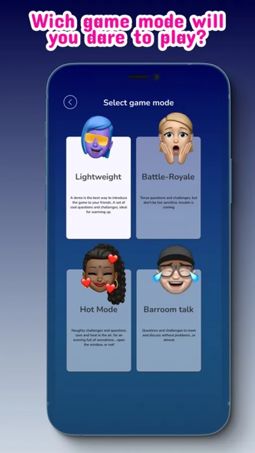 Say goodbye to old-fashioned games like Spin the Bottle, Truth or Dare, Quizup, and Cards Against Humanity! We have over 5,000 challenges and questions to keep every game night fresh and fun!