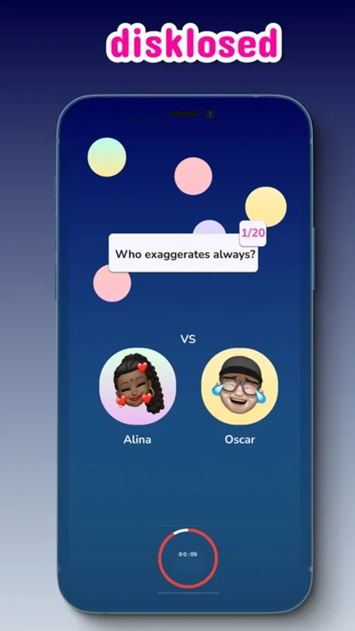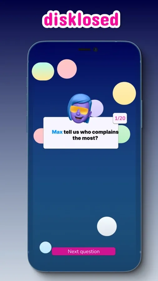 The game is simple. Add all of your friends' names and wait for them to be DISKLOSED! Answer questions, take on dares, and master challenges. With a variety of categories from cheeky to sexy to absurd, this game will make every moment you spend with your friends a blast!