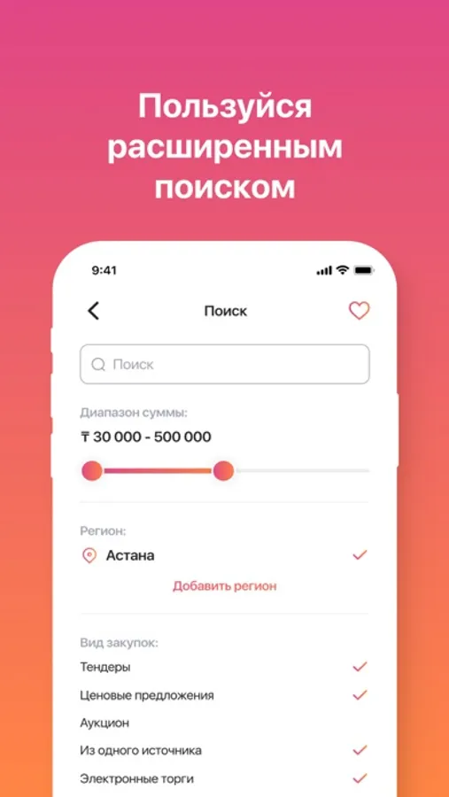 Мобильное приложение Colibri Zakupki площадка для просмотра всех видов закупок в одном приложении. Функционал приложения позволит вам с легкостью просматривать интересные лоты, отмечать понравившиеся лайками и формировать список лотов, который можно выгружать в формате документа. Также система будет учитывать ваши предпочтения и на их основе предлагать вам самые актуальные варианты лотов.