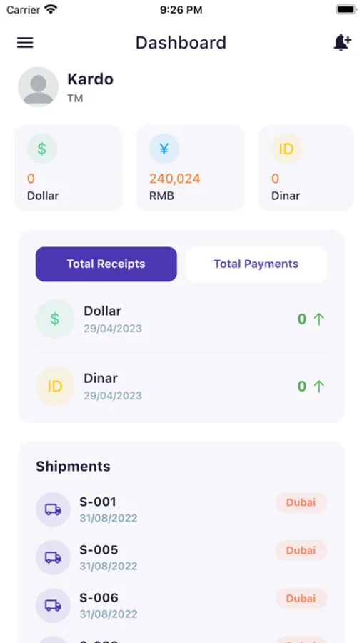 Shipment Tracking: The app should allow users to track the status of their shipments in real-time, view shipping history, and receive alerts and notifications about delivery status.