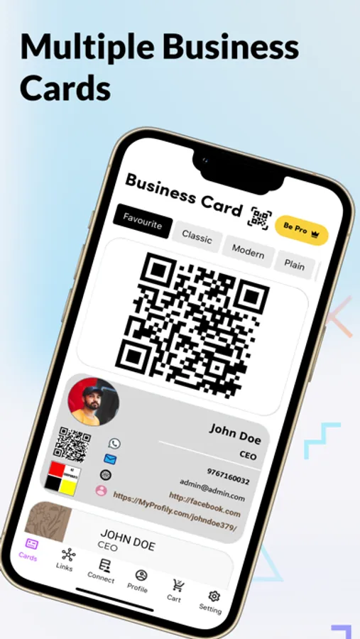 Biz Card - Smart Business Cards offers a user-friendly interface that allows you to design personalised digital business cards that reflect your professional brand. Choose from a wide range of customizable templates or create your own unique design, tailoring it to your specific needs. Add your contact information, including name, title, company, phone number, email, website, and social media profiles, ensuring that others can easily reach out and connect with you.