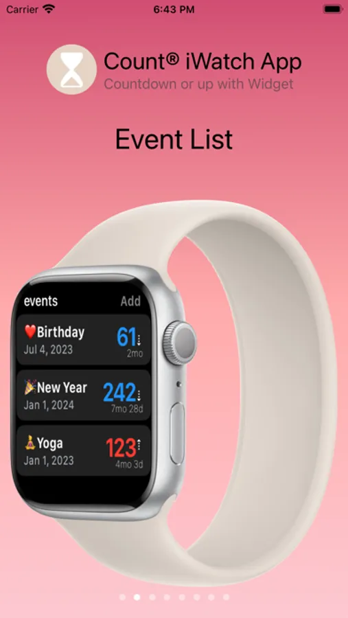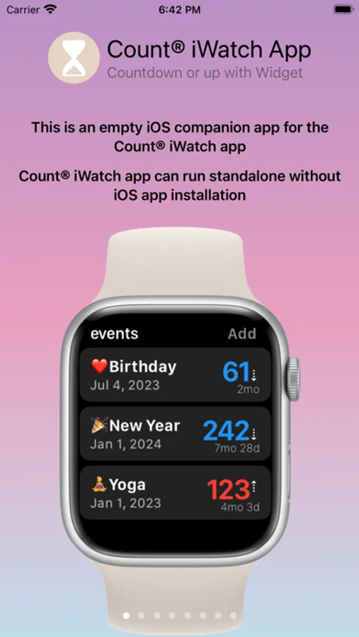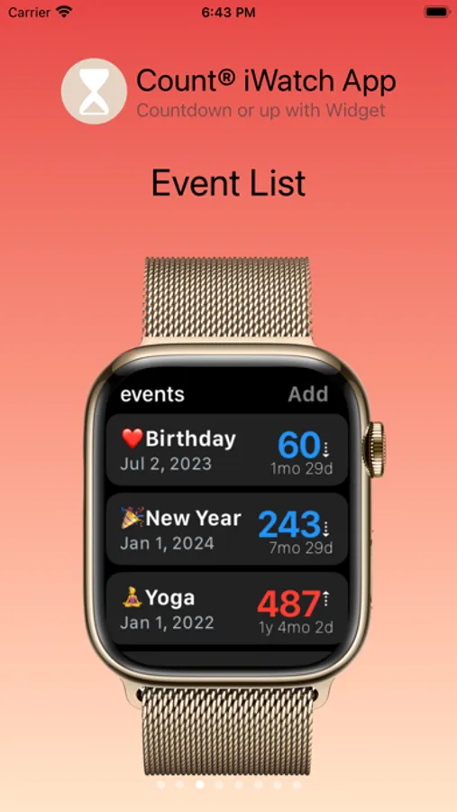 Countdown or up in days for any events: birthday, party, vacation, holiday, graduation, anniversary, ceremony, new year, etc.