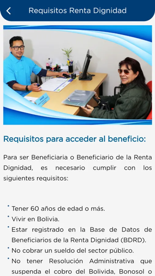 Ofrece información sobre los requisitos, beneficios, guía de trámites, lugares de pago, puntos de atención y otros aspectos sobre la Renta Dignidad y el Sistema Integral de Pensiones.