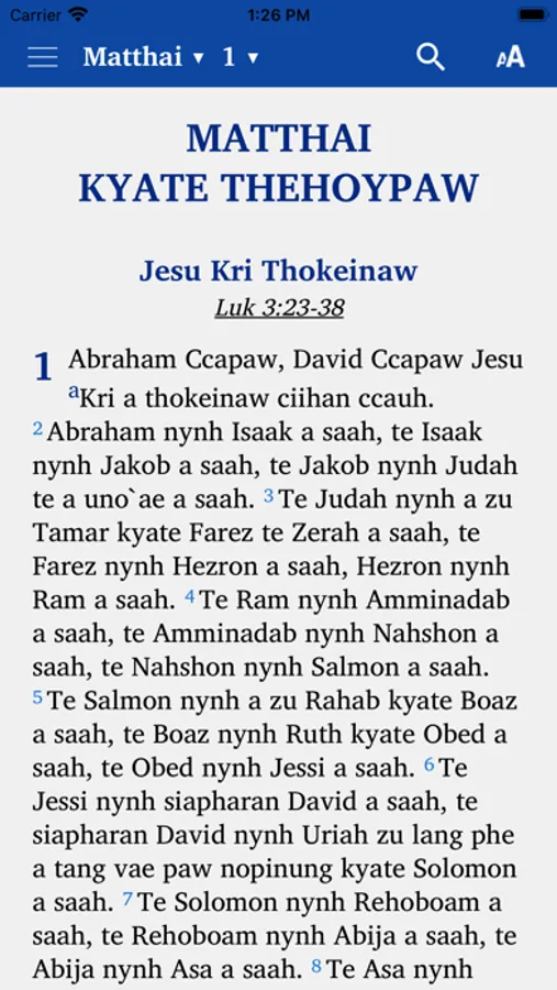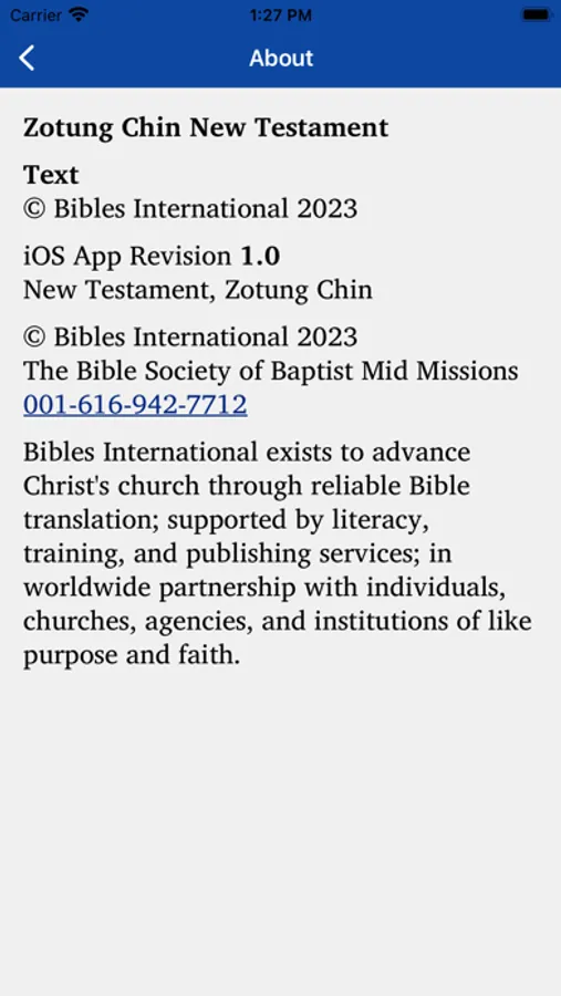 This app provides a translation of the New Testament of the Bible in the Zotung Chin language. It is produced by Bibles International, the Bible Society, Translation and Publishing Department of Baptist Mid-Missions.