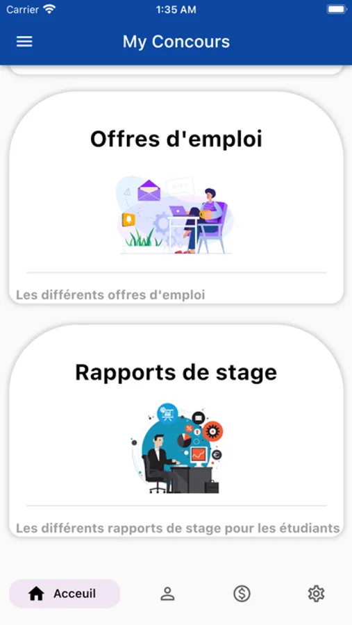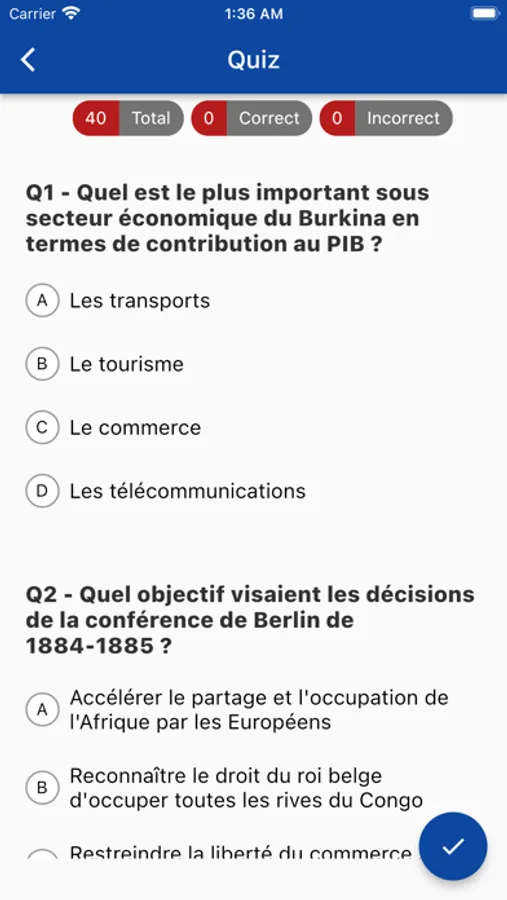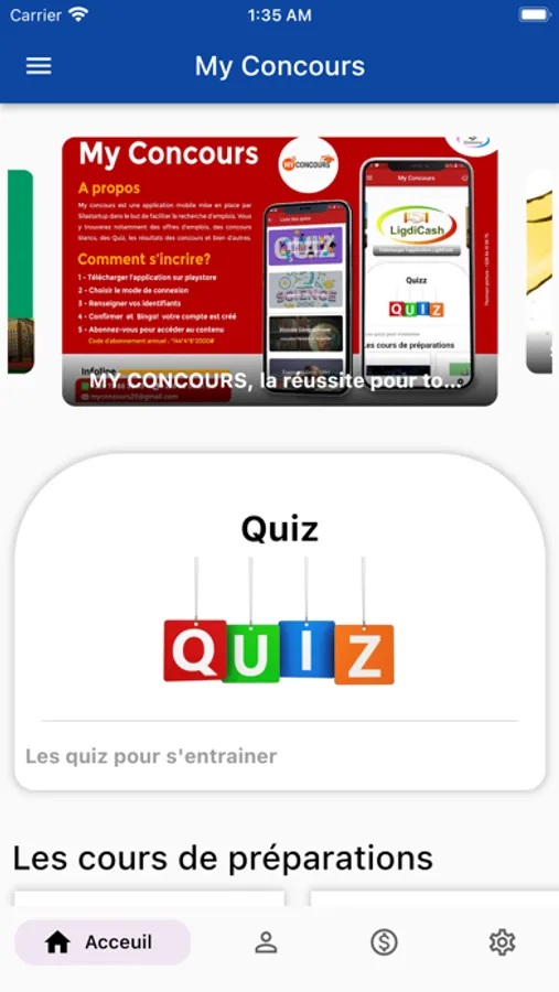 Tests pratiques : L'application propose également des tests pratiques, similaires à ceux que l'on peut trouver dans les concours du Burkina. Les utilisateurs peuvent choisir parmi une variété de tests, tels que des tests de mathématiques, de français, de culture générale ...