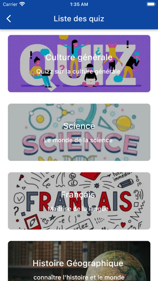 Correction de tests : Après avoir passé un test, les utilisateurs peuvent voir leurs résultats et les réponses corrigées pour chaque question. Cela leur permet de comprendre leurs erreurs et de s'améliorer.