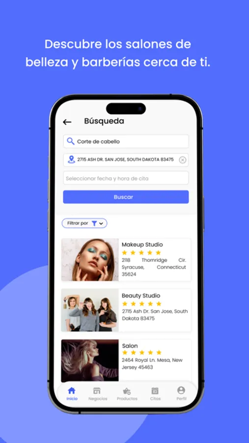 Explora los negocios locales cercanos, revisa calificaciones y reseñas de otros usuarios y busca negocios por categoría. También puedes ver los servicios y productos más vendidos y reservar citas rápidamente.