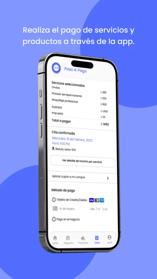 Con nuestra aplicación de reservas y compras, puedes reservar servicios y productos en cualquier momento y en cualquier lugar desde tu dispositivo móvil.