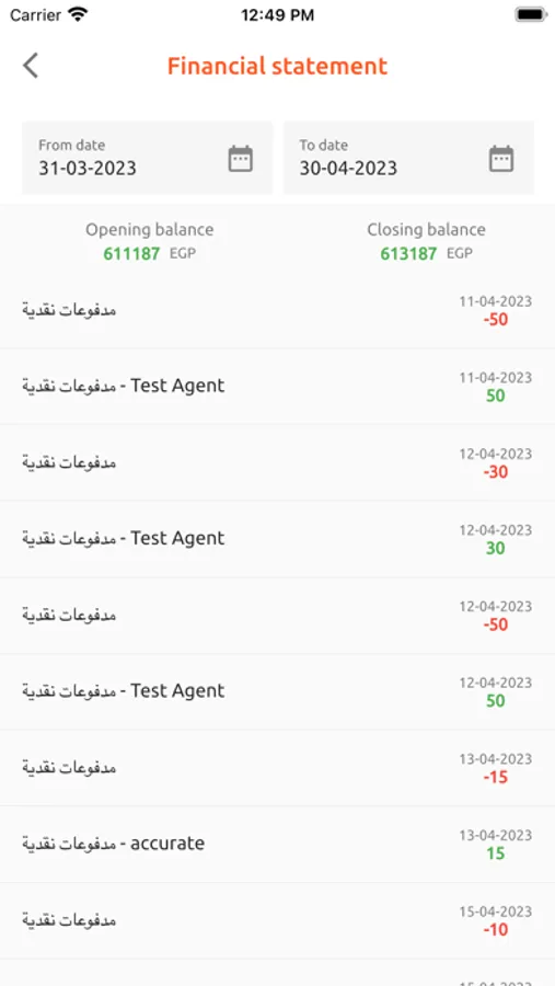 • كشف حساب العميل به تفاصيل المعاملات المالية