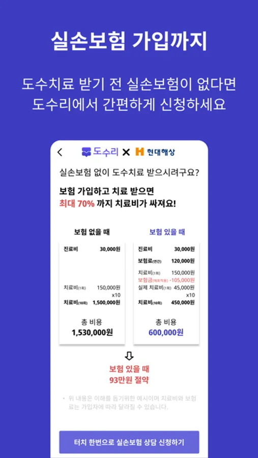 - 간편하게 실손보험 가입하고 최대 70% 싸게 치료 받을 수 있어요