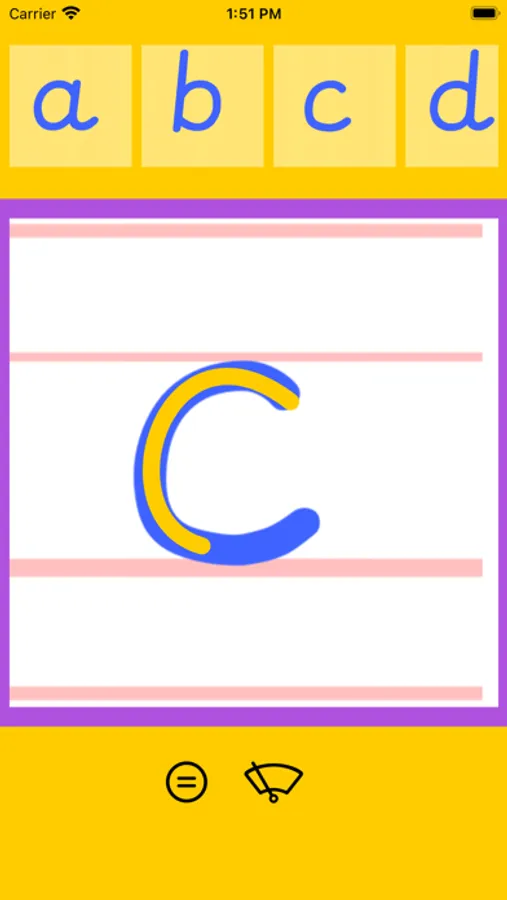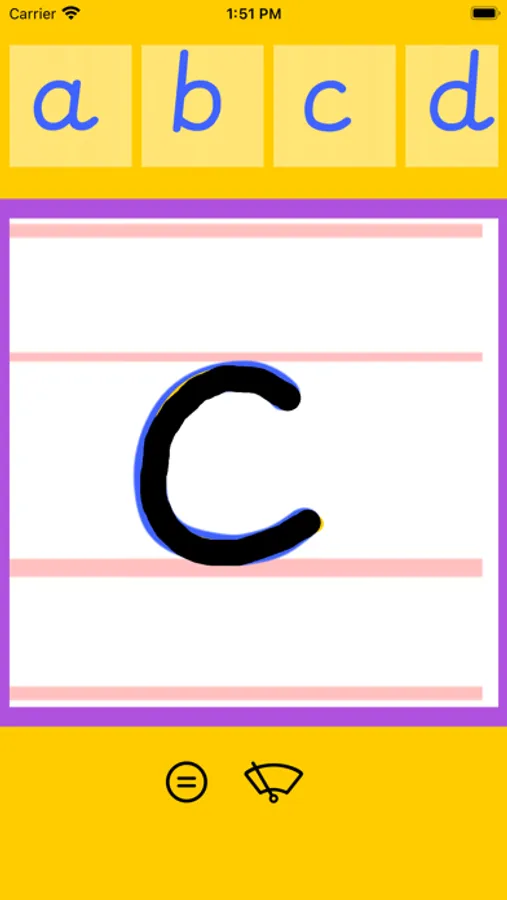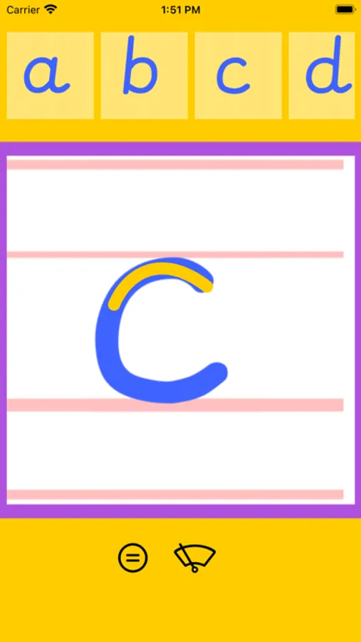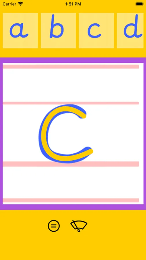 This very elementary app helps children learn how to draw out the alphabet on the screen. The programme guides children with a direction shown by the yellow line and the scale of the letter with the guidelines. When the child has drawn the letter, they need to press the = button for the application to determine if they have a match. The app enables children to "try and try again" until they are confident at forming each letter. The application can be used with just a finger to help with fine motor skills or a pen to help with pen-holding skills. Enjoy