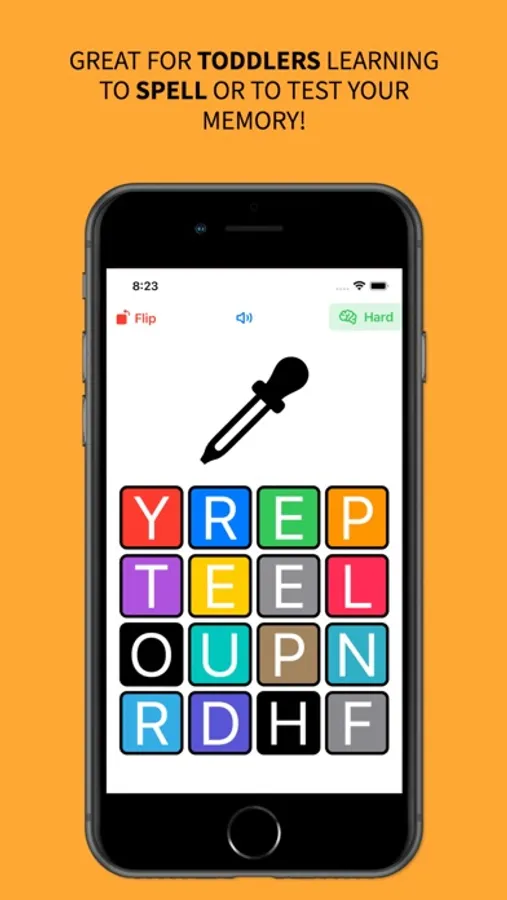 Really simple memory game to help with spelling for toddlers and adults. Play on hard to rank world wide.