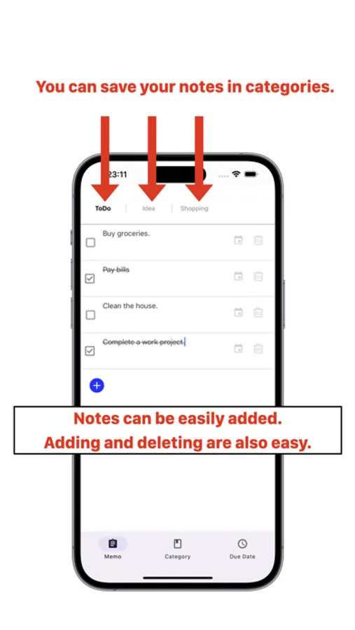 "Category Memo" is an application that allows you to categorize your memos.