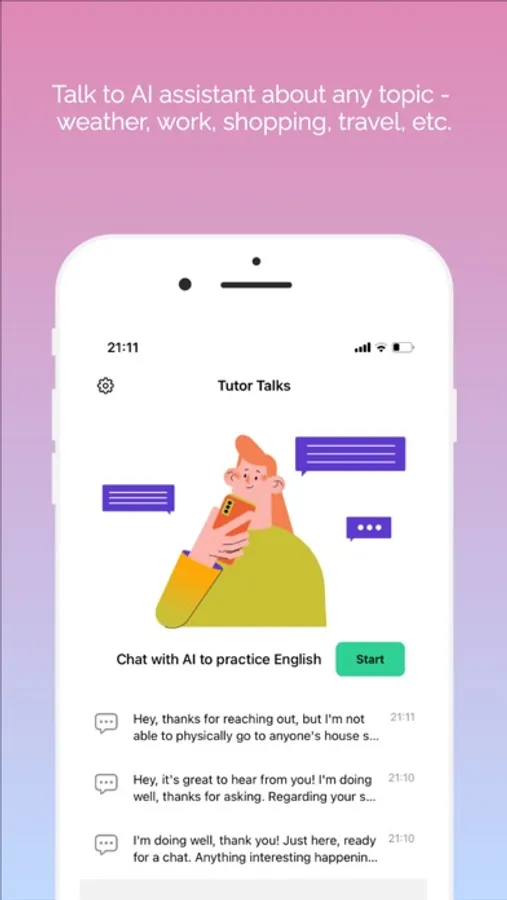 Looking to boost your spoken English skills? Look no further! Engage in vibrant conversations with our AI, powered by GPT. Whether you prefer text or voice messages, our app provides real-time correction to elevate your speaking abilities.