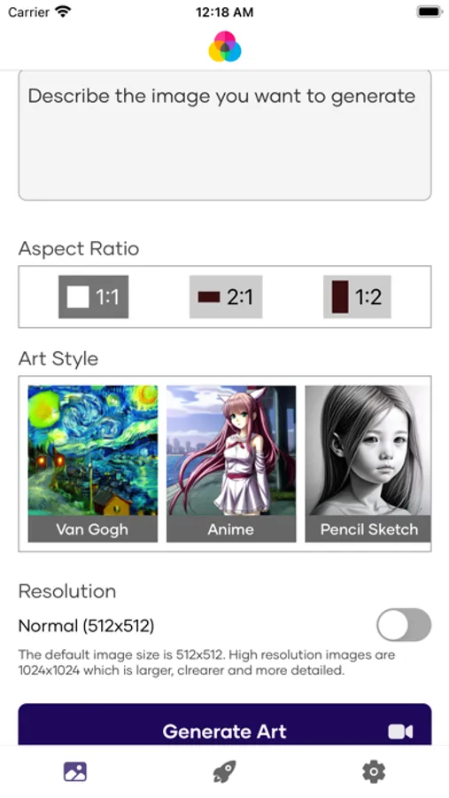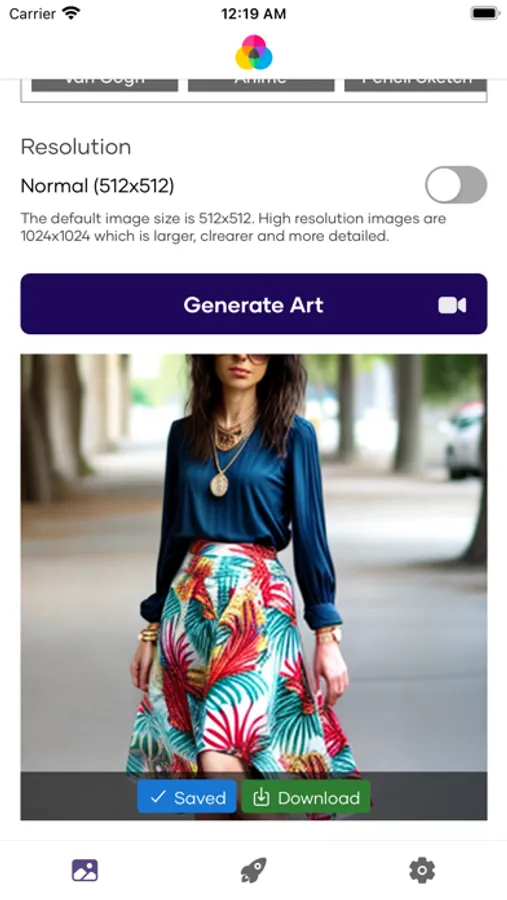 Launch the app and enter a prompt that describes the concept or theme you have in mind. It could be anything from "majestic landscapes" to "dreamy abstracts" or "fantastical creatures." ArtiVision's powerful AI algorithm analyzes your input and generates mesmerizing, high-quality images that will captivate your senses.