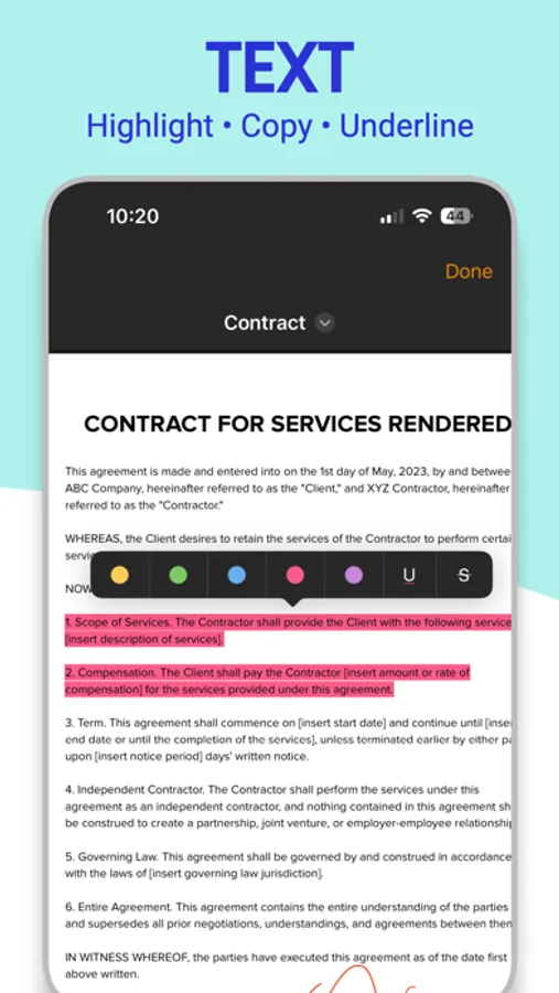 ► Edit your PDFs with powerful tools like highlighter, underline, and strikethrough