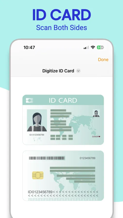 ► Scan both sides of your ID and get a neat, single-page PDF copy