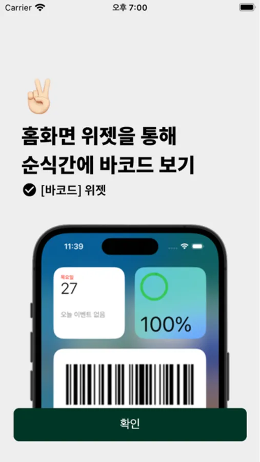 잠금화면 위젯을 통해 빠르게 앱을 실행시킬 수 있습니다. 앱에서는 세로형으로 긴 바코드를 제공하여 정말 빠르게 인식됩니다.