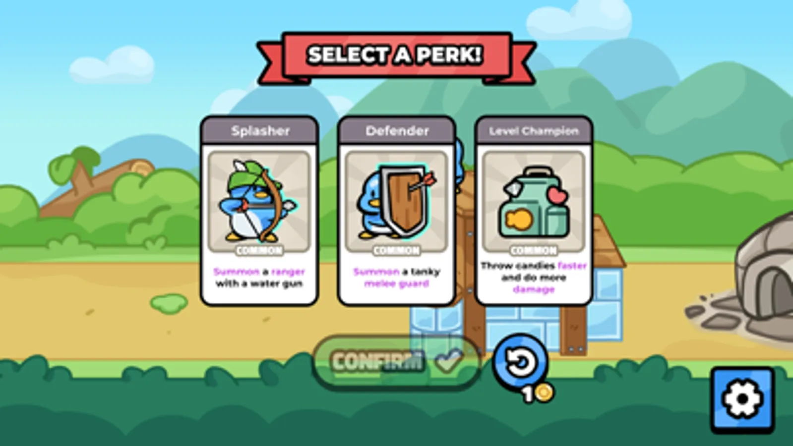 - Adorable Adventure: Control a heroic penguin and defend your castle from waves of charming enemies using candies.