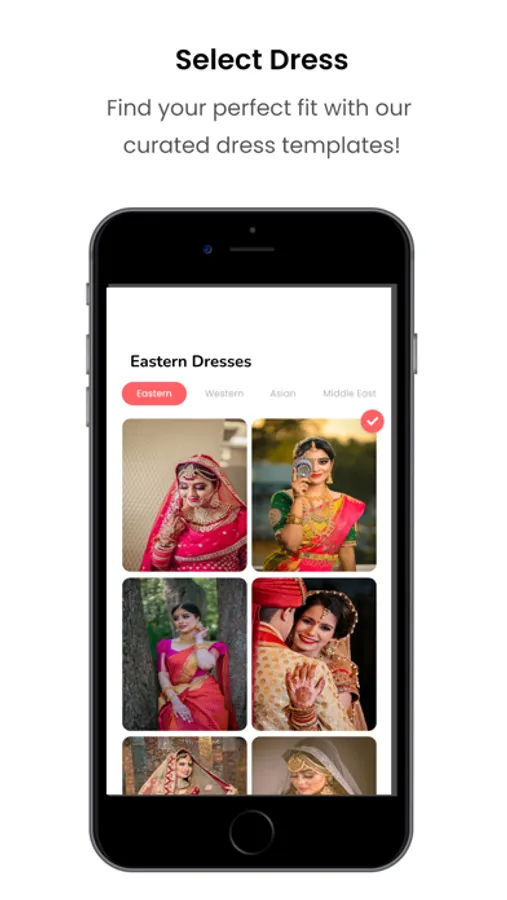 Our Bridal Dress Photo Editor app can transform your regular pictures into stunning wedding photos. The Wedding Dress Photo Editor is an amazing photo editing app for both the bride and groom, allowing you to change outfits effortlessly. With a vast range of options to choose from, including the latest bridal wedding dresses, couple suits, men's suits, traditional sarees, formal suits, and more, you can create a unique photo montage in the wedding dress photo editor. This app is the ultimate photo editing tool for wedding couples, featuring a diverse selection of royal dresses for the bride and groom.