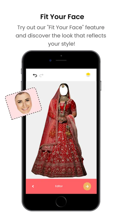 Download ‘Bridal Dress Photo Editor” to experience more than just Bridal Dress Photo Suits and elegant couple dresses. This editor app allows you to change your dress in a photo for free and is one of the best bridal couple's dress changers and montage photo editing apps.