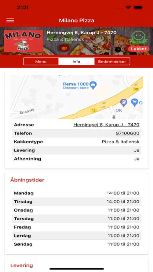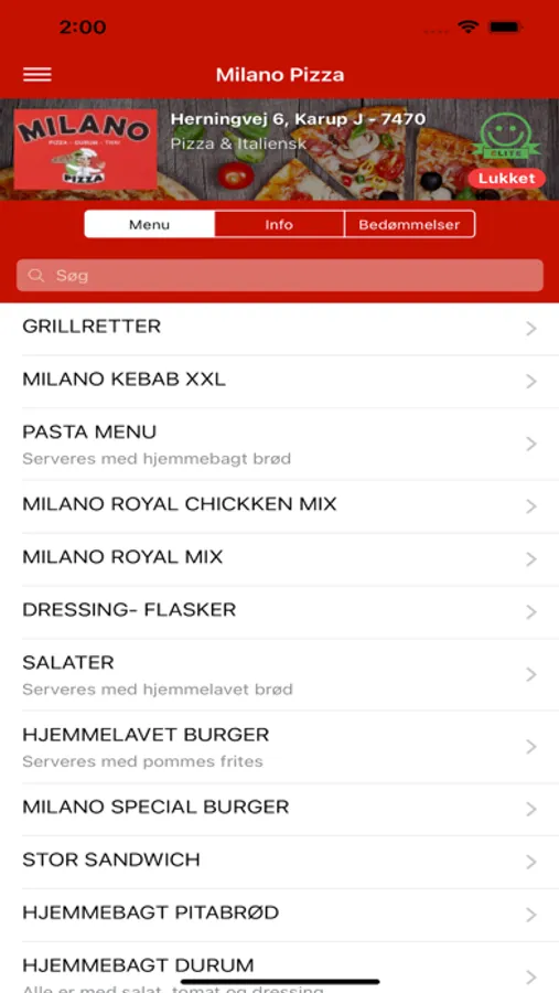 Bestil pizza, burger, pasta, m.m. med få tryk, nemt og hurtigt!