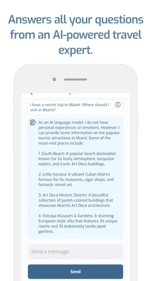 Trip Guide with AI Chatbot: Get answers, recommendations, and personalized suggestions from an AI-powered travel expert.