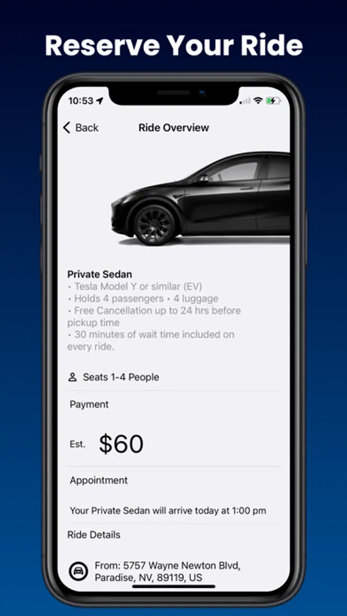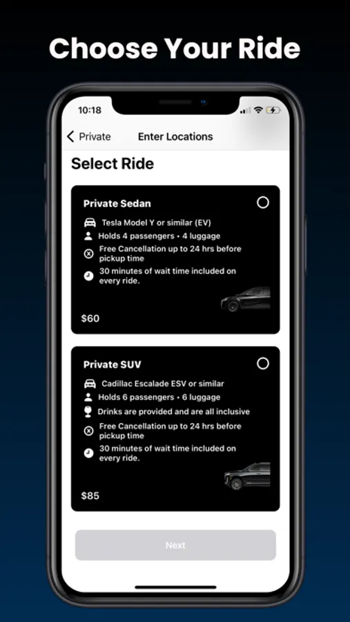 App reservation platform designed for our clients to schedule and ride with our private EV fleet. Enjoy peace of mind when reserving a ride.