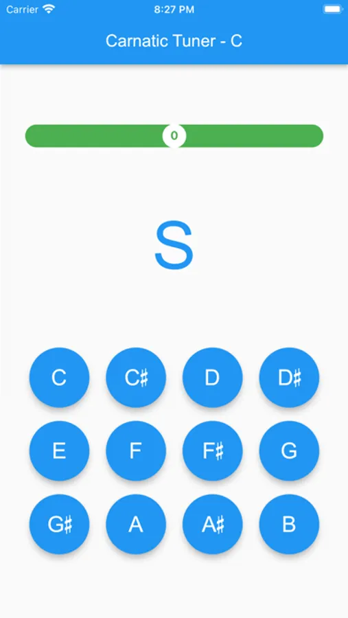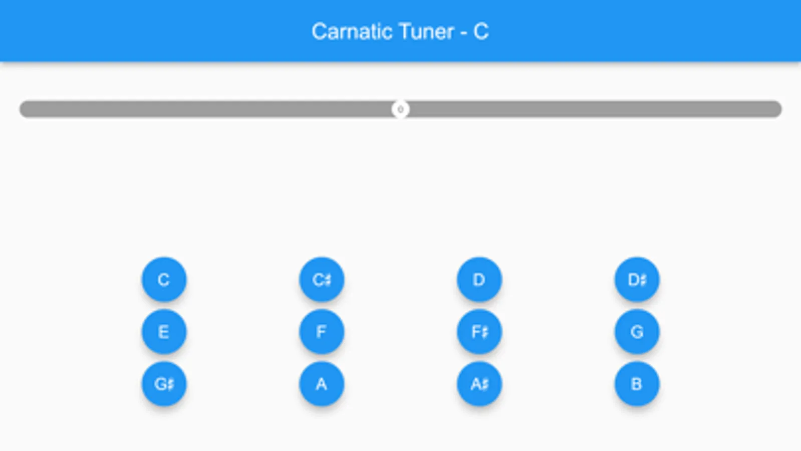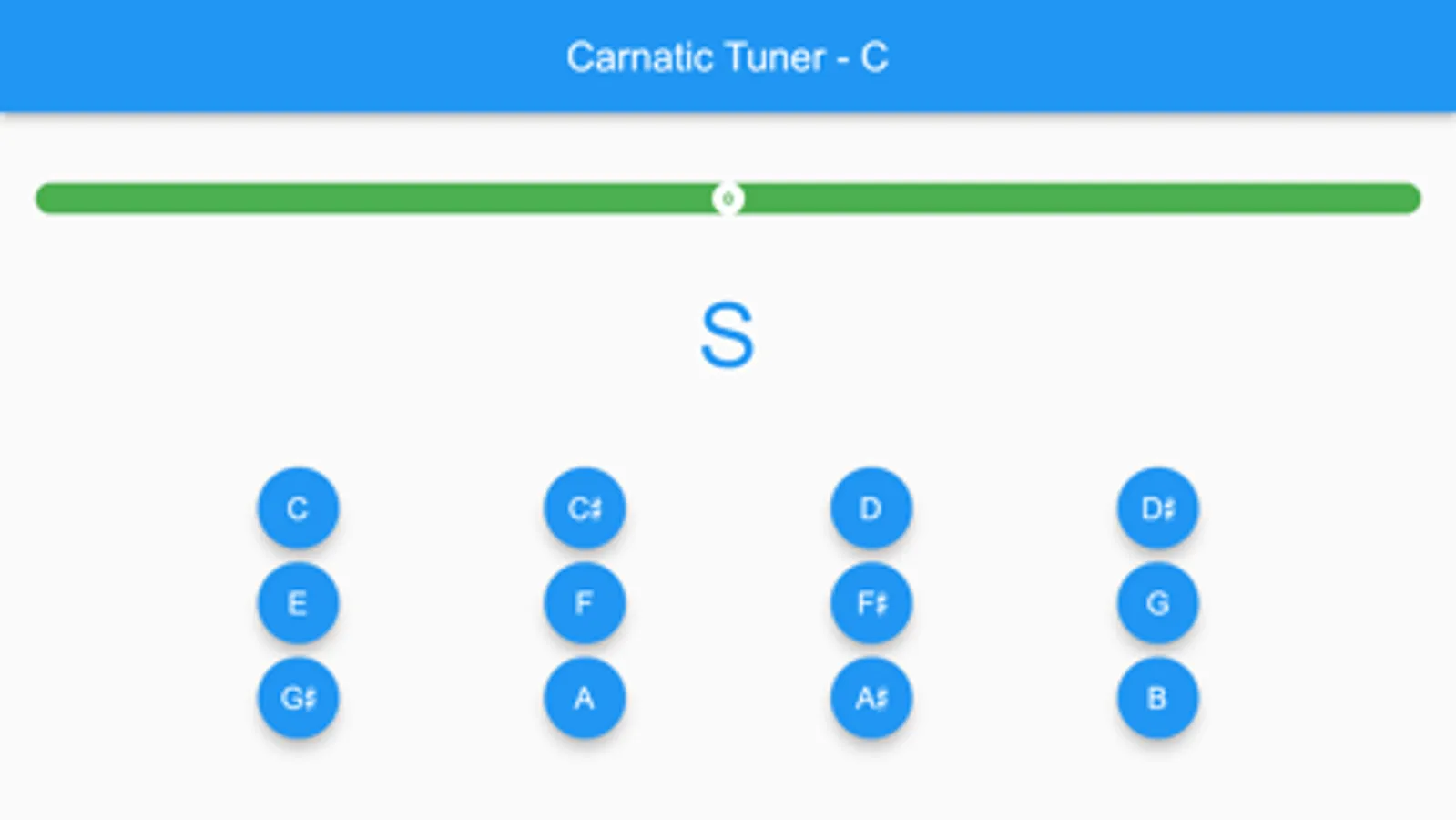A simple and easy-to-use app for tuning Carnatic instruments. To get started, select the tonic pitch using the buttons visible on the screen. Then start playing, as you play, the app will tell you the swara you are playing and how in tune you are. The bar above the note shows how far you are off of the correct swara. If the bar is green, it means you are reasonably in tune! However, if the bar is red, that means you are out of tune. Please make sure shruti box/tambura is on low volume if you are using one.