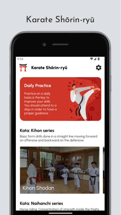 This app will provide you curated content around different Katas. You’ll be able to watch videos where a sensei executes a kata and some others where they are teaching or making corrections to their students.