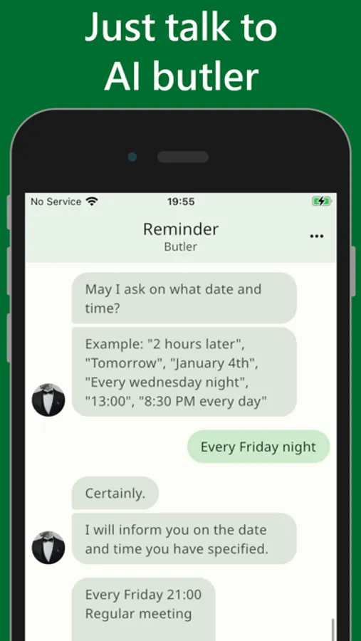 • The AI butler remembers the chat conversations and notifies you with local notifications when the scheduled time arrives