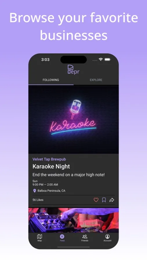 • Look at your feed page to find the events and promotions being offered by your favorite businesses