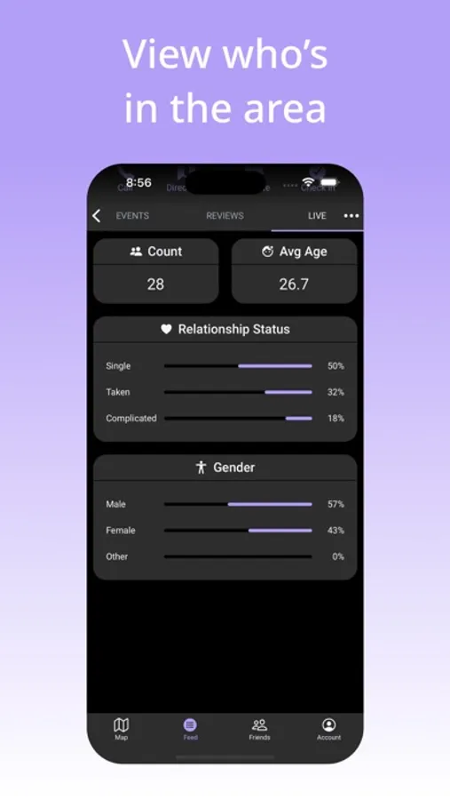 • Explore the heat map to see real time updates on the demographics of people at a business or event