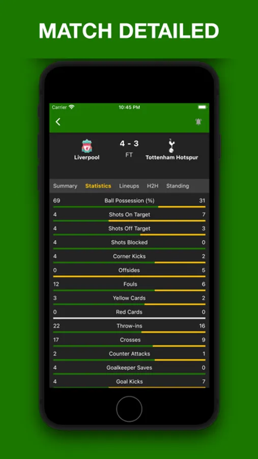 Subscribe on matches, teams or entire leagues to receive fast push notifications and you will never miss a match event.